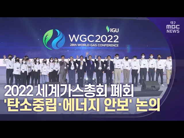 ◀앵커▶2022 대구 세계가스총회가 닷새간의 일정을 마무리하고 5월 27일 대단원의 막을 내렸습니다. 코로나19 유행으로 1년 연기돼 치러진 총회에는 8천여 명이 참가해 에너지 관련 기술과 정보를 교류했습니다.특히 우크라이나 러시아 전쟁으로 관심이 높아진 에너지 안보가 주요 의제로 떠올랐습니다.권윤수 기자가 보도합...