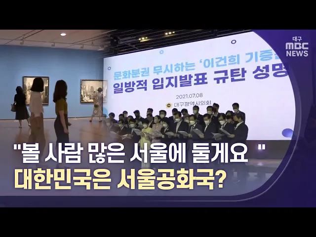 ◀앵커▶정부가 이건희 미술관을 서울에 짓겠다고 발표하자 유치 경쟁에 뛰어든 많은 자치단체가 반발하고 나섰습니다.수천억 원의 건립비용까지 부담하겠다며 적극 유치에 나섰던 대구에서도 각계 각층에서 비판의 목소리를 쏟아냈습니다.권윤수 기자가 보도합니다.◀기자▶ 문화체육관광부는 어제 이건희 미술관을 서울에 지...