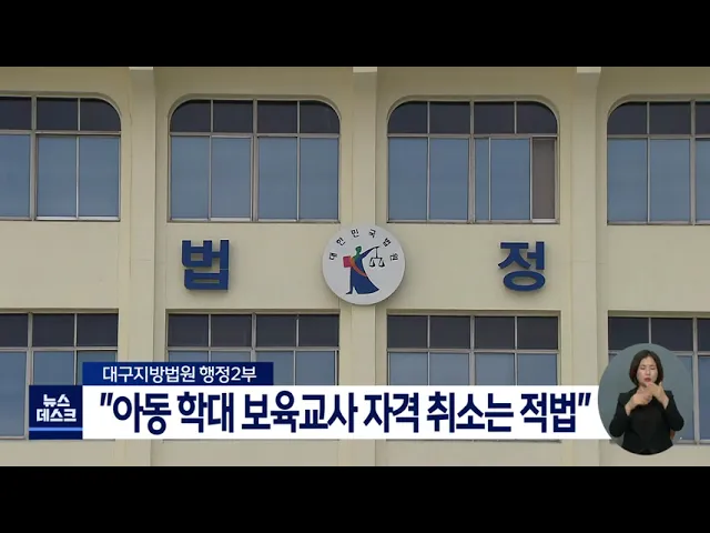 초등생에게 동성애를 다룬 영상을 보여줘 보육교사 자격을 박탈당한 어린이집 관계자가 처분을 취소해 달라며 제기한 소송에서 재판부가 취소가 적법하다고 판결했습니다.대구지방법원 행정2부 이진관 판사는 당시 어린이집 원감이던 A 씨와 부원장이던 B 씨가 대구 달서구청장을 상대로 낸 자격 취소처분 취소 소송에서 원...