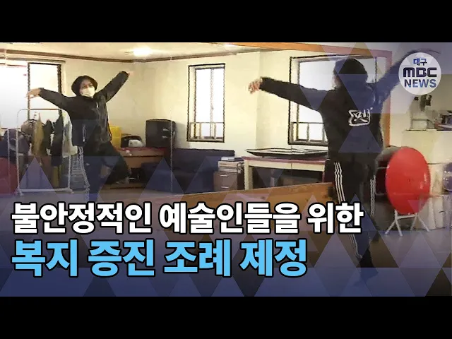 ◀ANC▶각종 행사에 참여하는 문화·예술인들은 행사가 취소되면 작품을 준비한 대가를 받지 못하는 경우가 대부분인데요. 대구의 한 기초의회가 예술인이 연습 기간 들인 노력에도 대가를 지불할 수 있도록 하는 조례를 대구·경북에서 처음으로 만들었습니다. 권윤수 기자입니다. ◀END▶ ◀VCR▶무용수 박도운 씨의 일...