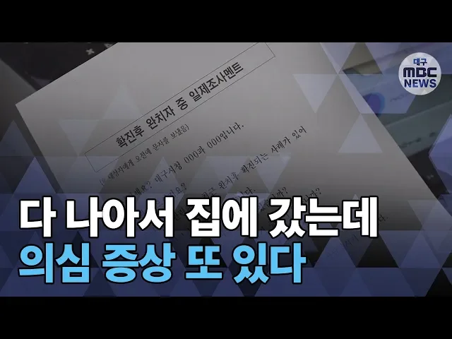 완치 판정을 받고 재확진되는 사례가 늘자 대구시가 완치된 환자를 대상으로 전화 모니터링을 하고 있습니다. 대구시는 완치된 환자 5천 1명에게 전화를 걸어 발열과 기침, 두통 등 코로나19 증상이 있는지 파악해 증상이 있는 사람은 즉시 진단 검사를 해 재확진으로 인한 감염 확산을 막기로 했습니다. 대구에서는 지금까...