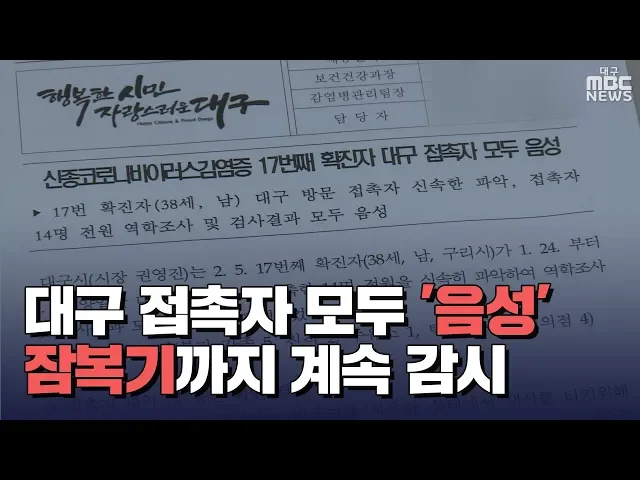◀ANC▶ 어제 저녁 신종 코로나 17번째 확진자가 대구를 다녀간 사실이 알려지면서 '설마' 하면서도 '혹시나' 하며 걱정하신 분들이 많았습니다. 여]확진자가 대구에 있는 동안 접촉한 14명은 다행스럽게도 검사 결과 모두 음성으로 나왔습니다. 권윤수 기자가 보도합니다. ◀END▶ ◀VCR▶17번째 확진자가 지난달 24일...