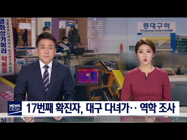 대구를 다녀간 신종 코로나바이러스 17번째 확진자와 함께 열차를 탄 사람들도 접촉자로 분류돼 자가 격리 중입니다. 경상북도는 도청 공무원 1명이 17번 확진자와 같은 KTX 칸에 머물렀던 것을 확인하고 자가 격리했는데, 이상 증세는 없습니다. 질병관리본부는 열차를 이용한 또 다른 대구 시민을 파악해 대구시로 통보했...