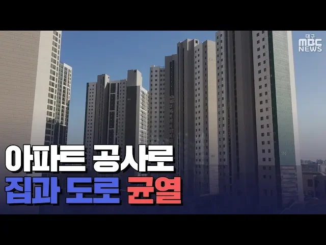 ◀ANC▶고층 아파트 공사 현장 주변에서 도로가 갈라지고 주택 벽이 갈라지는 현상이 나타나 주민들이 불안에 떨고 있습니다.행정 당국은 공사를 중단시키고 시공사에 안전진단을 하라고 지시했습니다. 권윤수 기자가 현장 취재했습니다. ◀END▶ ◀VCR▶지하 4층·지상 47층 아파트를 짓는터파기 공사가 진행 중인 현장...