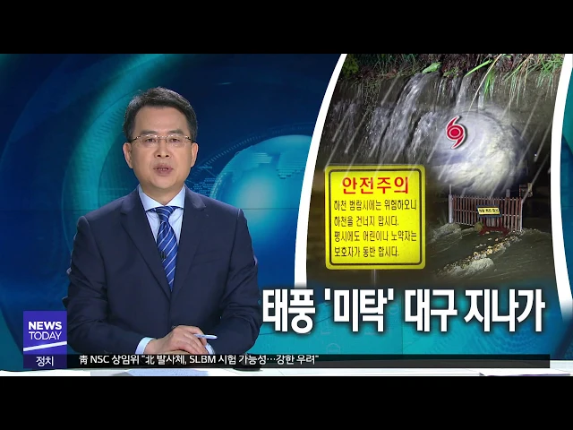 ◀ANC▶ 오늘 새벽 5시쯤 대구를 지나간 태풍 미탁은 현재 동해로 향하고 있습니다. 대구와 경북지역에는 여전히 태풍의 영향으로 비가 내리고 있는데요. 취재 기자 연결해 자세히 알아봅니다. 윤태호 기자 전해주시죠. ◀END▶ ◀현장 s.u▶ 태풍 미탁은 2~3시간 전 쯤 대구를 지났습니다. 내륙을 지나 현재는 동해를 향하...