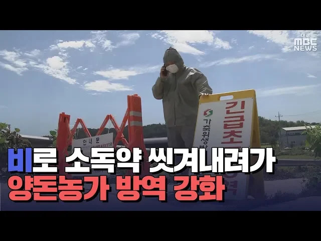 ◀ANC▶ 태풍이 지나갔는데 혹시 피해는 없으셨습니까? 오늘은 태풍이 지나고 아프리카 돼지열병 방역이 처음부터 다시 시작됐다는 소식으로 시작합니다. 여] 많은 비가 내리면서 소독약이 다 씻겨 버리자 방역을 새로 하면서 돼지 열병 확산에 대비하고 있습니다. 권윤수 기자가 취재했습니다. ◀END▶ ◀VCR▶ 돼지 7...