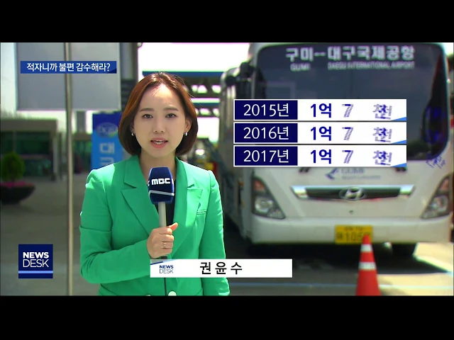 ◀ANC▶ 대구국제공항과 구미를 오가는 공항리무진 버스 이용객이 해마다 늘고 있습니다. 올해는 6만 명 정도가 이용할 것으로 보이는데요. 이용객 불만이 이만저만 아닙니다. 권윤수 기자가 취재했습니다. ◀END▶ ◀VCR▶ 구미시외버스터미널 주변에서 여행 가방을 든 사람들이 길을 헤매고 있습니다. 대구국제공항으...