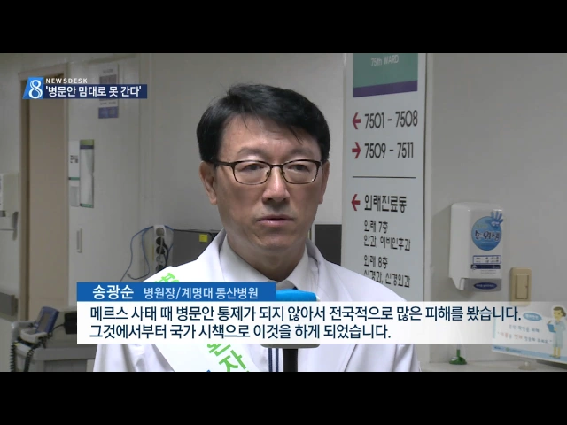 ◀ANC▶ 지난 2015년 메르스 사태 당시, 병원이 주요 감염경로였다는 점, 기억하실텐데요. 대구의 종합병원들이 제2의 메르스 사태를 막기 위해 병문안객 출입통제를 잇따라 시행하고 있습니다. 권윤수 기자가 취재했습니다. ◀END▶ ◀VCR▶ 계명대 동산병원 의료진들이 환자와 방문객들에게 안내문을 나눠주고 있습니...