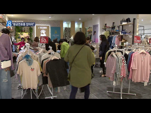 ◀ANC▶ 5월 첫 주, 황금연휴 특수를 잡기 위해 유통업체마다 안간힘을 쓰고 있습니다. 경기 침체 가운데 소비자들의 지갑을 열기 위한 경쟁이 그야말로 치열합니다. 권윤수 기자가 취재했습니다. ◀END▶ ◀VCR▶ 중간에 낀 평일에 휴가를 내면 최장 11일의 황금연휴가 생기는 다음 주. 지역의 한 백화점은 황금연휴 손...