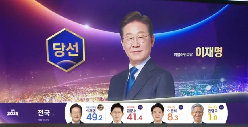 [방송 3사 출구 조사]이재명 후보 51.7% 1위 예측…2위 김문수와 12.4%p 차이