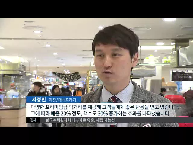 ◀ANC▶ 요즘 백화점들이 앞다퉈 식품관 새단장에 나서고 있습니다. 이른바 '맛집'을 찾아다니는 손님들을 백화점 매장으로 끌어들여 매출을 올려보겠다는 전략입니다. 권윤수 기자가 취재했습니다. ◀END▶ ◀VCR▶ 잇단 대기업들의 진출로 고전을 면치 못하고 있는 전국 유일의 향토백화점 대백프라자. 지난 10월 지하...