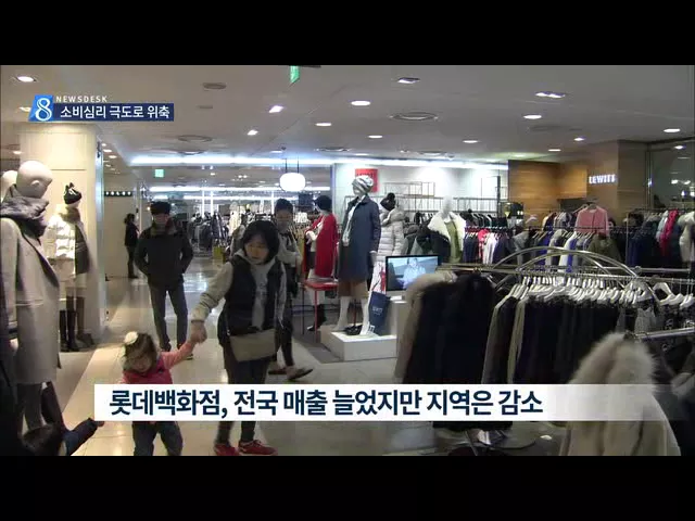 ◀ANC▶ 요즘 경기가 안좋긴 안좋은 모양입니다. 백화점들이 겨울 할인행사를 했는데, 7년만에 매출이 줄었다고 합니다. 소비심리가 날씨만큼이나 꽁꽁 얼어붙은겁니다. 권윤수 기자가 보도합니다. ◀END▶ ◀ANC▶ 지난 2주 동안 백화점 겨울정기 할인행사에서 지역 백화점들은 매출 부진을 면치 못했습니다. 대구백화...