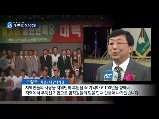 ◀ANC▶ 전국에서 유일하게 남아 있는 향토 백화점 대구백화점이 창립 70주년을 맞았습니다. 서울 대기업의 잇단 진출에 어려움을 겪었는데, 2년 뒤에 신세계 입점을 앞두고 있어 또 한번 생존 경쟁이 예상됩니다. 권윤수 기자가 취재했습니다. ◀END▶ ◀VCR▶ 대구백화점 70주년 기념행사는 간소하게 치러졌습니다. 근...