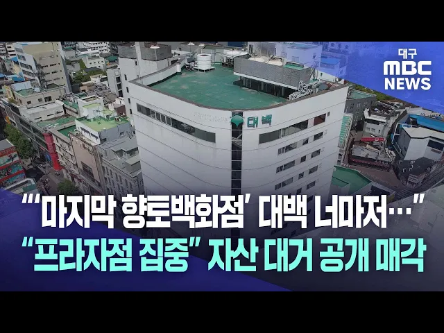 ◀앵커▶국내 유일의 향토백화점인 대구백화점이 자산을 대거 공개 매각합니다.자산 매각 뒤 대백프라자 활성화에 역량을 집중하겠다고 밝혔는데요.한때 대구 경제를 상징했던 대구백화점이 위기에서 벗어날 수 있을지 관심이 집중되고 있습니다.도건협 기잡니다.◀기자▶대구백화점이 동성로 본점과 아웃렛, 물류센터를 공개경...