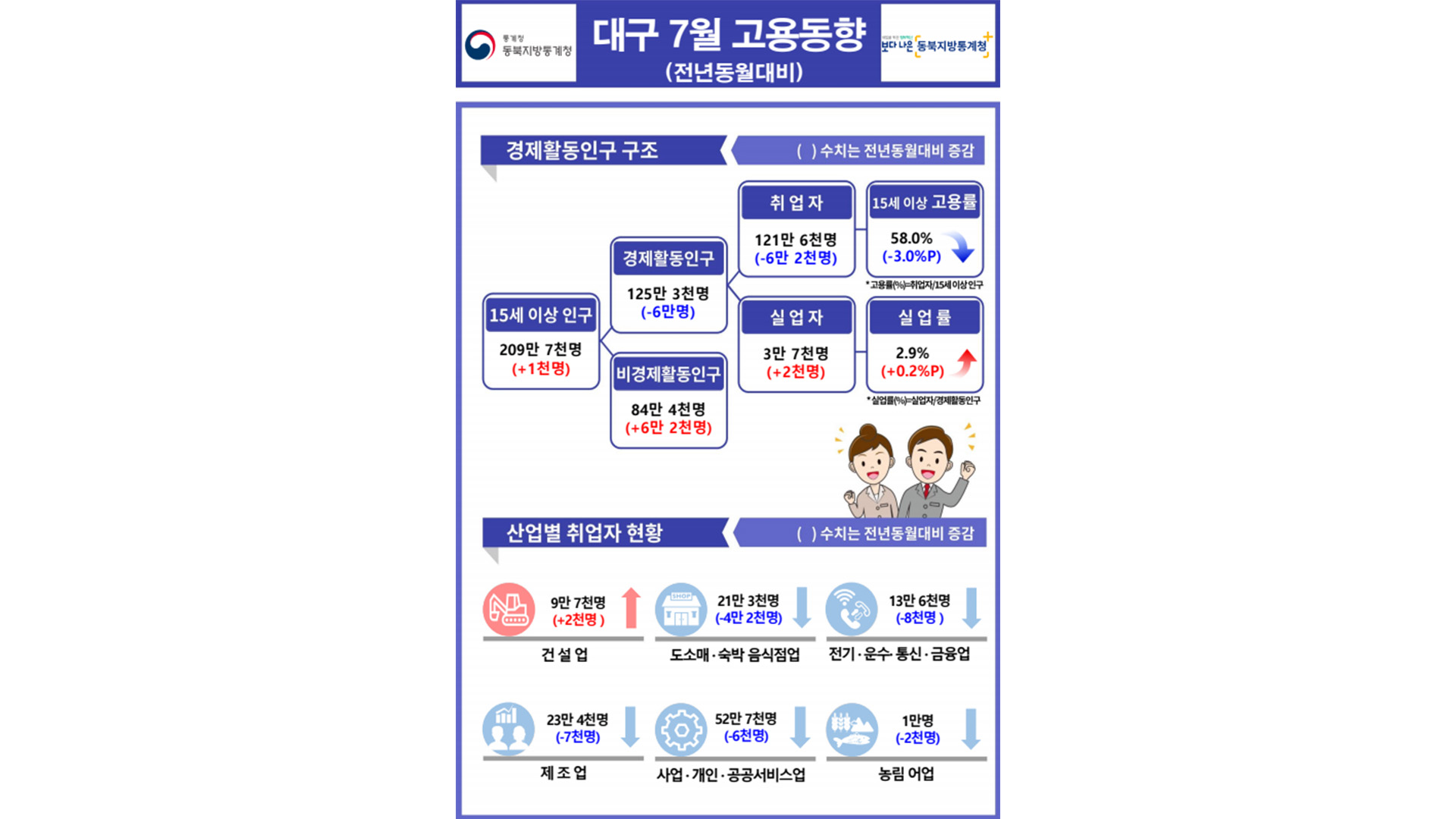 대구 7월 고용률, 1년 만에 3%P 하락···경북은 0.9%P 상승