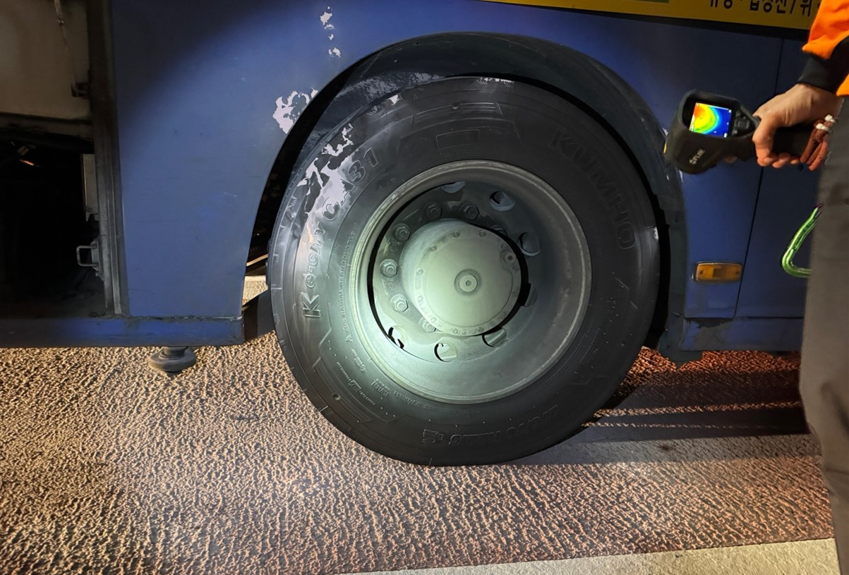 사진 제공 경북 소방본부10월 17일 오후 10시 25분쯤 경북 포항시 북구 양덕동에서 운행 중이던 전기 시내버스의 시동이 꺼지면서 버스 아래쪽에서 불이 났습니다.이 불로 2020년식 전기버스의 전기 구동 모터와 타이어 2개가 불에 탔고, 관계자들이 소화기로 직접 불을 껐습니다.버스에 타고 있던 운전기사와 승객 1명은 ...