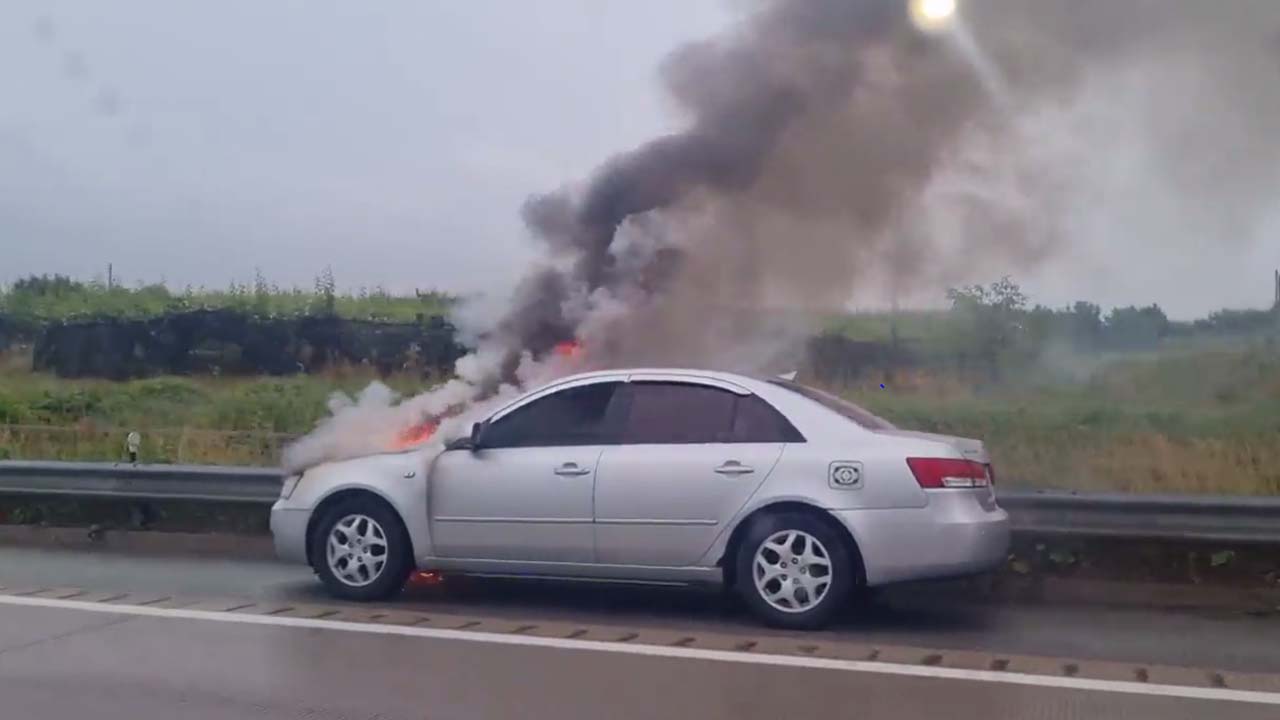 상주에서 고속도로 달리던 차량에 화재