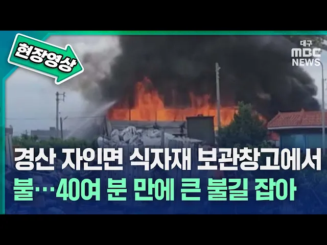 6월 8일 오전 9시 49분쯤 경북 경산시 자인면에 있는 수입 식자재 보관창고에서 불이 났습니다.불이 나자 소방 인력 50여 명과 화재 진압장비 18대를 동원해 진화 작업을 벌여 오전 10시 34분쯤 큰 불길을 잡았습니다.이어 굴착기까지 동원해 건물을 해체하면서 잔불을 정리해 오후 3시 16분쯤 진화를 완료했습니다.이 불로...