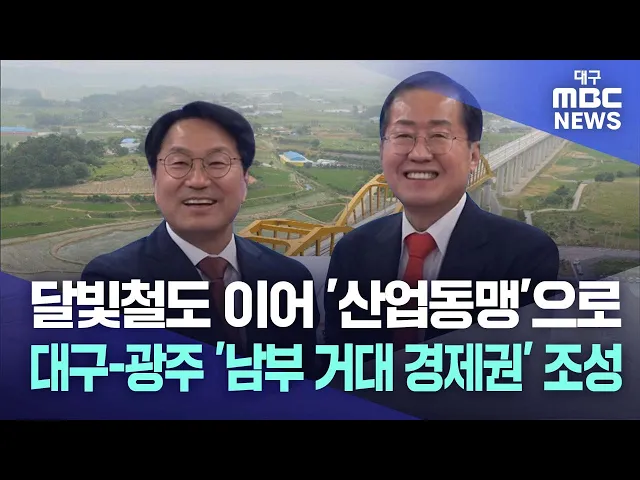 ◀앵커▶광주와 대구를 잇는 달빛철도 특별법 통과로 한층 더 강화된 달빛동맹이 이제는 산업동맹을 향한 첫발을 뗐습니다.광주시와 대구시는 남부 거대경제권을 조성해 수도권에 버금가는 경쟁력을 확보한다는 계획입니다.광주MBC 김영창 기자입니다.◀기자▶달구벌과 빛고을이 손을 잡고 협력하기로 한 것은 2009년으로 거슬...