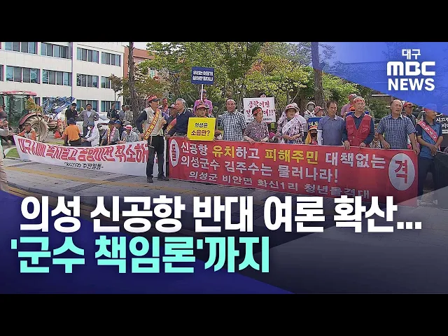 ◀앵커▶대구경북신공항 화물 터미널 위치를 두고, 의성 지역에서 반발이 이어지는 가운데 지역 일각에선 의성군수 책임론까지 불거지고 있습니다.경북도의회에서는 대구시에 신공항 주도권을 뺏긴 나머지 경상북도의 공항 청사진은 상대적으로 부족하다는 지적이 나왔습니다.김서현 기자입니다.◀기자▶100여 명의 의성군민들...