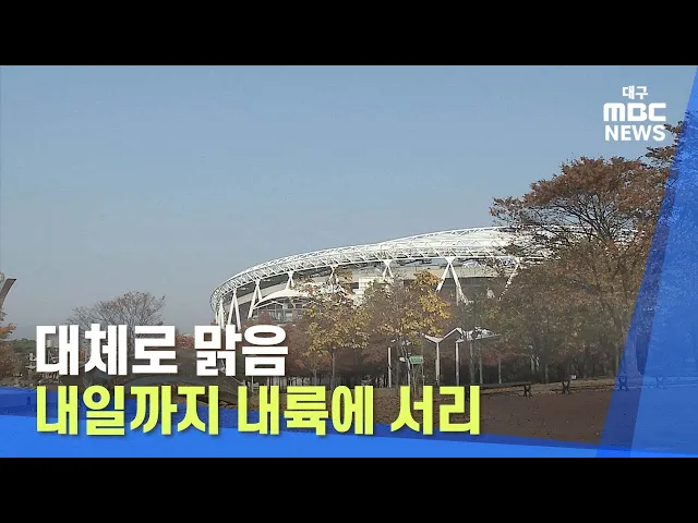 오늘 대구 경북은 대체로 맑겠습니다.아침 최저기온은 대구 6.4, 구미 5.5, 안동 2.9, 포항 9.9도로 어제보다 2-3도 정도 낮습니다.낮 최고기온은 대구와 구미 20도, 안동 18도 등 16도에서 21도까지 올라 일교차가 크겠습니다. 내륙에는 아침까지 짙은 안개가 끼는 곳이 있겠습니다.대구지방기상청은 오늘과 내일 새벽부터...