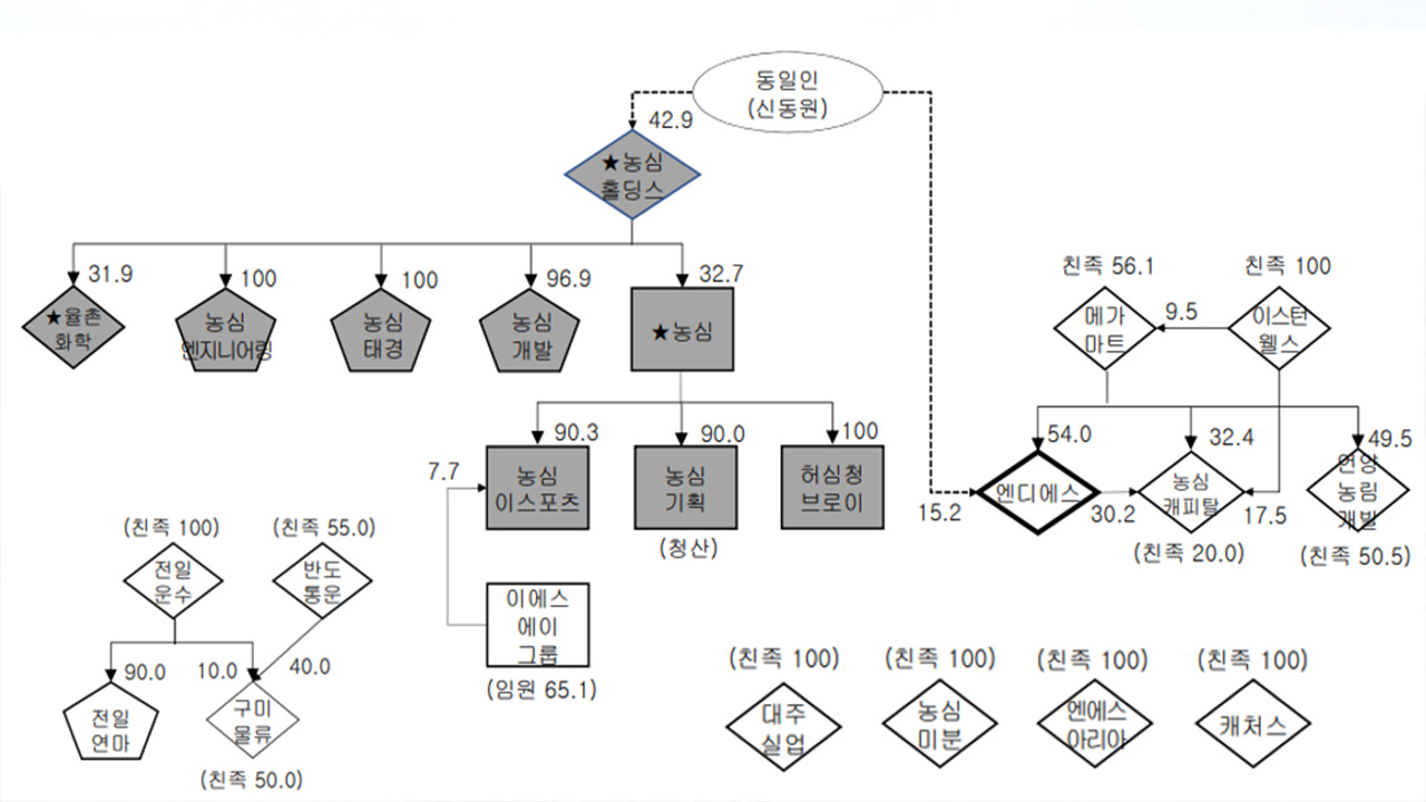 사진 제공 공정거래위원회공정거래위원회는 농심 신동원 회장이 친족과 임원 회사를 소속 회사 현황에서 누락했다며 검찰에 고발하기로 했습니다. 공정위에 따르면 신 회장은 2021년부터 2023년 사이 공시대상기업집단 등 지정을 위한 자료를 제출하면서 친족 회사 10개사와 임원 회사 29개사 등 총 39개사를 소속회사 현황...