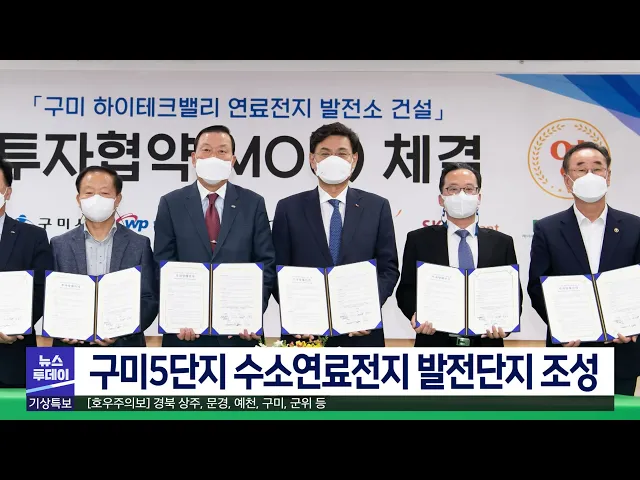 구미 국가산업 5단지에 수소연료전지를 활용한 발전소가 들어섭니다. 경상북도와 구미시는 한국서부발전 등과 함께 구미 5단지에 수소연료전지 발전단지를 조성하는 투자양해각서를 체결했습니다. 총사업비 6천억 원을 들여 만 6천500 제곱미터 터에 90메가와트급 발전단지를 조성해 20년 동안 운영하는 내용입니다. 1년에 ...