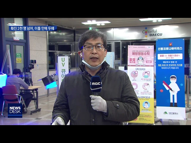 ◀ANC▶대구에서는 코로나 19 확진환자가2천 명을 훌쩍 넘어서이틀 만에 두 배가 됐습니다.사망자도 17명으로 늘었습니다.대구시청에 나가있는 취재기자 연결합니다.도건협 기자! (네, 대구시청입니다.)안타까운 소식이 연일 나오는데요.숨진 분은 평소 앓고 있던 병이 있었나요?◀END▶◀도 건 협▶네. 오늘 오전 7시 20분...