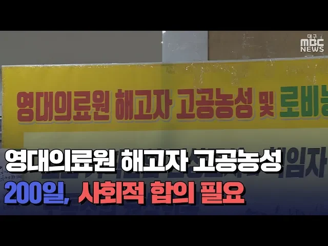 ◀ANC▶영남대의료원 해고노동자 박문진씨의고공농성이 오늘로 200일을 맞았습니다.의료원이 노조 파괴로 악명을 떨쳤던 창조컨설팅과 손잡은 전력이 있는 만큼잘못에 대한 책임을 지고 사회적 합의를 통한 해법을 찾아야 한다는목소리가 커지고 있습니다.도건협 기잡니다. ◀END▶ ◀VCR▶C.G] 지난 2012년 국정감사에...