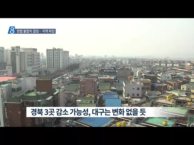 ◀ANC▶ 어제 이 시간에도 전해드렸는데요. 헌법재판소가 선거구의 인구편차를 2대 1까지 허용한다는 결정을 내리면서 파장이 일파만파 번지고 있습니다. 여] 지역 정치권은 농촌지역 침체와 도·농간 불균형이 심해질 것으로 우려하고 있는데, 선거제도 개혁논의도 필요하다는 목소리가 커지고 있습니다. 도건협 기자가 취...