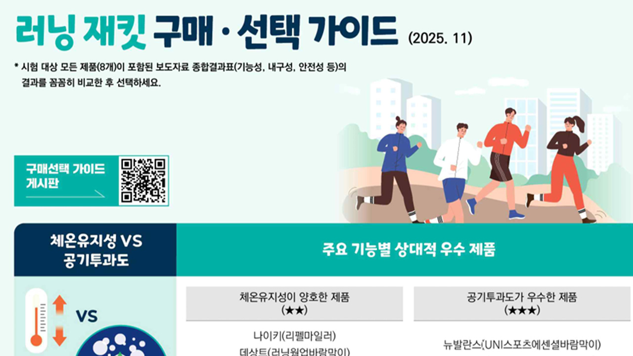 '러닝 재킷' 가성비 1위는?···절반은 세탁 5번 하면 발수성 떨어져