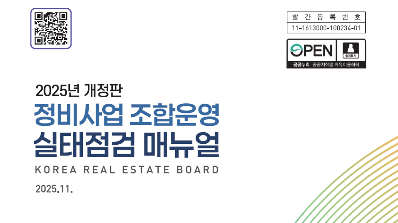 자료 제공 한국부동산원한국부동산원은 재개발·재건축 사업의 투명성을 높이고 신속한 주택 공급을 지원하기 위해 '정비사업 조합 운영 실태 점검 매뉴얼'을 개정해 배포한다고 밝혔습니다.개정판은 유형별 주요 점검 사례와 더불어 점검 요지, 관련 규정과 판례를 함께 구성했습니다. 2019년 최초 발행 이후 개정된 정비사...