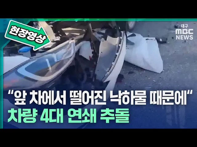 10월 12일 오후 2시 25분쯤 경북 경산시 남천면 중앙고속도로 대구 방향 남천교에서 승용차와 SUV, 1톤 화물차 등 차량 넉 대가 연쇄 추돌하는 사고가 발생했습니다. 이 사고로 1톤 포터 운전자가 차량에 다리가 끼어 병원으로 옮겨져 치료를 받고 있지만 생명에는 지장이 없는 것으로 알려졌습니다.경찰은 앞서가던 차에서...