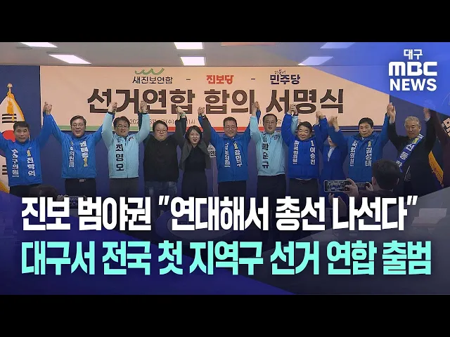 대구에서 민주 진보 범야권이 연대해 제22대 국회의원 선거를 치릅니다.3월 6일 오전 더불어민주당 대구시당에서 더불어민주당 대구시당, 새진보연합 대구시당, 진보당 대구시당이 '선거연합'에 합의하고 서명식을 가졌습니다. 선거연합에 따라 대구 동구을 선거구에는 민주당 이승천 후보가 출마하지 않고 진보당 황순규 ...