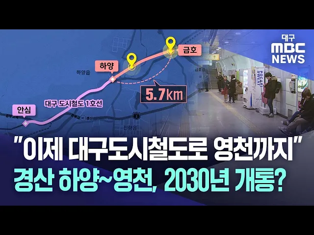 ◀앵커▶대구 도시철도 1호선 영천 연장 사업이 정부의 예비타당성조사를 최종 통과했습니다.앞으로 대구 도시철도 1호선이 경산을 거쳐 영천까지 이어지는 사업이 본격 추진됩니다.2024년 말이면 대구 도시철도 1호선 종점역이 안심역에서 경산 하양역으로 3개 구간이 늘어나게 되는데요, 지역 발전에 대한 기대가 커지고 있...