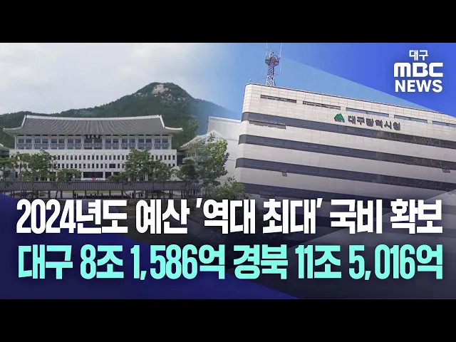 대구시와 경상북도가 2024년도 예산에서 역대 가장 많은 국비를 확보했습니다.12월 21일 국회를 통과한 2024년도 정부 예산에 따르면 대구는 국비 8조 1,586억 원, 경북은 11조 5,016억 원으로 2022년보다 대구는 4.3%, 경북은 5% 늘었습니다.대구는 대구경북신공항 건설사업 설계비 100억 원이 반영됐고 취수원을 안동댐으...
