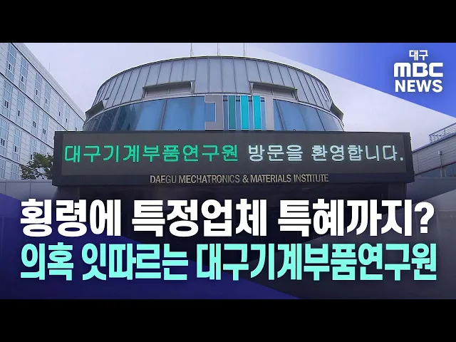 ◀앵커▶대구기계부품연구원 관련 의혹 연속 보도하고 있습니다.이번에는 기계부품연구원이 국가와 대구시 예산을 받아 건립한 차세대 금형기술혁신센터 운영 문제입니다. 2022년 금형협동조합에 위탁 운영을 맡겼는데, 현행법을 위반했다는 문제 제기가 나왔습니다.김은혜 기자입니다.◀기자▶대구 달서구 성서공단에 있는 차...