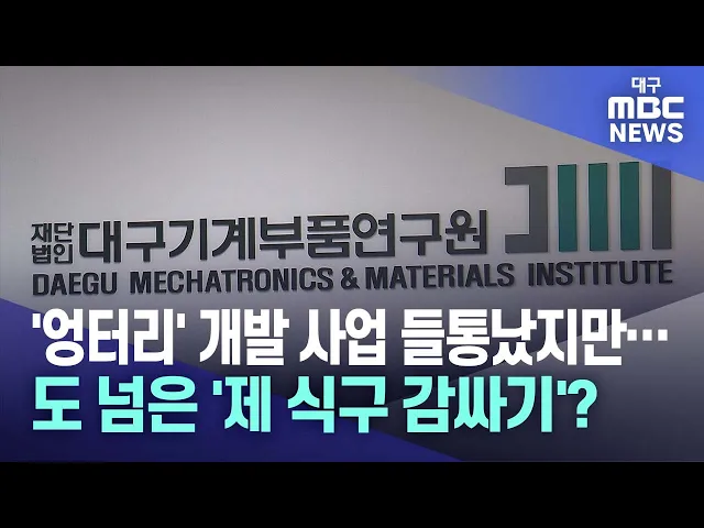 ◀앵커▶대구기계부품연구원은 기계, 금속 분야 연구개발과 상담, 기술이전을 위해 설립한 재단법인이자 공직 유관단체입니다. 그런데 국가기관을 상대로 '엉터리 연구개발 사업'을 하다 적발돼 징계를 받았습니다.연구원은 징계에 따른 합당한 조치는 커녕 제식구 감싸기만 하고 있다는 지적을 받고 있습니다. 김은혜 기자가...