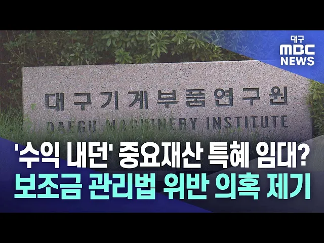 [심층] 보조금으로 지은 시설물 특혜 임대?···대구기계부품연구원, 보조금 관리법 위반 의혹까지