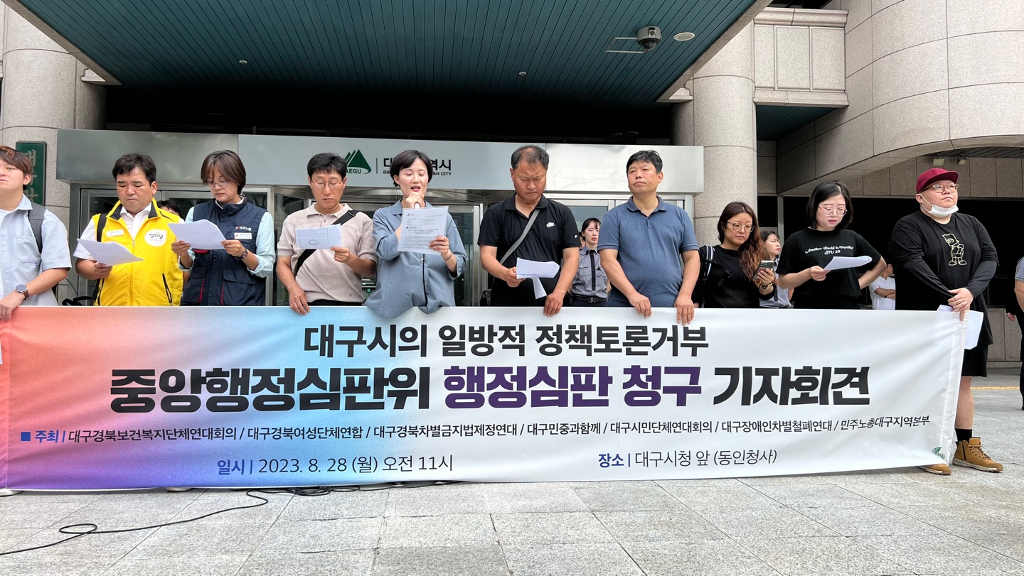 대구시민단체연대회의가 정책토론 청구를 대거 수용하지 않은 대구시를 상대로 중앙행정심판위원회에 정심판을 청구했습니다.시민단체는 "대구시가 검열에 가까운 검증을 하고, 위법하지 않은 사항을 불법인 듯 호도해 권한을 남용했다"면서 "행정심판위원회가 브레이크 없는 대구시의 부당한 행정을 막아야 한다"고 주장했...