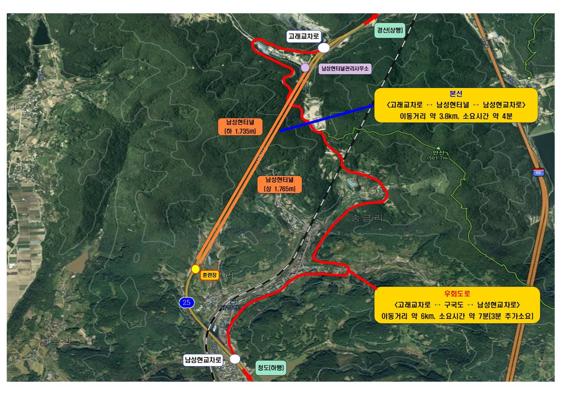 대구국토관리사무소, 31일 정오부터 남성현 터널 양방향 3시간 교통통제