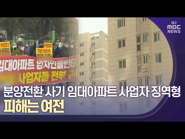 ◀앵커▶임차인들에게 분양 전환을 해 주겠다며 수십억 원을 받아 가로챈 공공 건설 임대아파트 임대사업자들에게 징역형이 선고됐습니다.무거운 처벌을 요구한 임차인들은 당연한 결과라면서도 검찰 구형보다 낮은 형량에는 아쉬움을 드러냈습니다.재판 결과도 결과지만, 아직도 피해 복구는 이뤄지지 않고 있어 임차인들의 ...