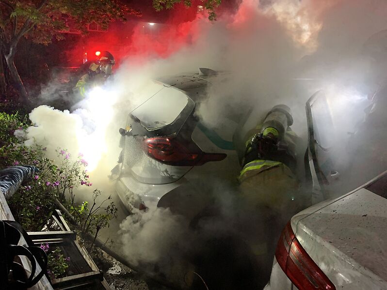 주차장서 전기차 화재··2시간여 만에 꺼져