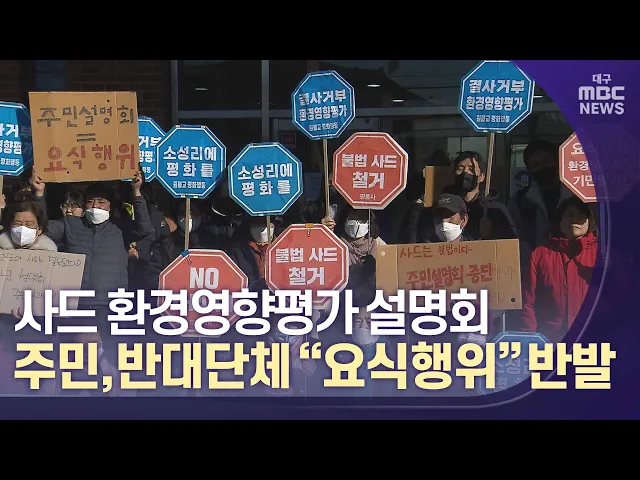 ◀앵커▶3월 2일 주한미군 고고도미사일방어체계, 사드가 배치된 성주와 김천에서 환경영향평가 주민설명회가 열릴 예정이었습니다만 무산됐습니다.반대하는 주민들과 단체들의 완강한 반대에 부딪혔기 때문인데요.물리적 충돌은 없었습니다만, 7년째 갈등은 계속되고 있습니다.김은혜 기자 나와 있습니다.국방부는 적법한 과...
