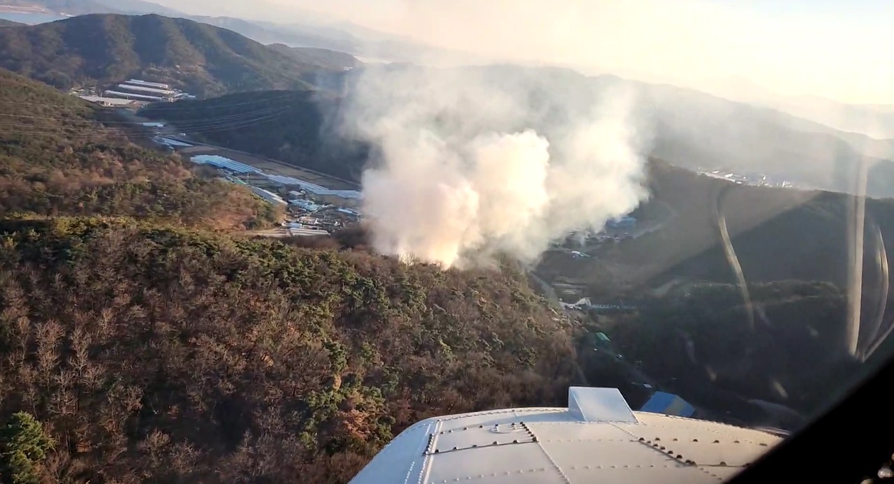 사진 제공 산림청12월 20일 오후 3시 50분쯤 성주군 선남면 한 야산에서 불이 났습니다.현재 헬기 4대와 60명을 투입해 진화 작업을 벌이고 있습니다.대구와 내륙 곳곳에 건조특보가 내려진 가운데 불이 난 성주지역도 산불위험지수가 70을 넘었습니다.산림 당국은 진화를 마무리하는 대로 원인을 조사할 방침입니다.