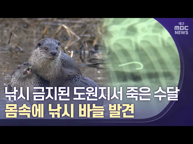 ◀앵커▶멸종위기 야생 생물 1급인 수달이 대구 곳곳에 서식하고 있다는 사실 다들 알고 계실 텐데요.대구 달서구에 있는 도원지에도 수달이 서식하는 게 확인돼 수달 생태섬도 조성했습니다.그런데, 이 도원지에서 새끼 수달이 죽은 채 발견됐는데, 몸속에서 낚싯바늘이 있었습니다.도원지는 낚시가 금지된 곳입니다. 김은혜...