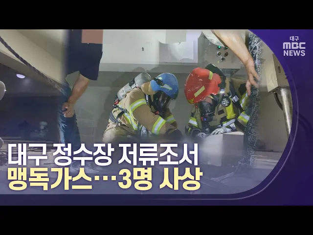 ◀앵커▶낙동강 물을 정수하는 대구의 정수장 저류조 안에서 3명이 쓰러져, 1명이 숨지고 2명이 중태에 빠졌습니다. 저류조 안에서는 청산이라 불리는 맹독성 물질 사이안화수소가 치사량 가까운 농도로 검출됐습니다.이런 사례가 처음이다 보니 원인 파악도 어렵고 그만큼 불안감도 커지고 있습니다.김은혜 기자입니다. ◀기...
