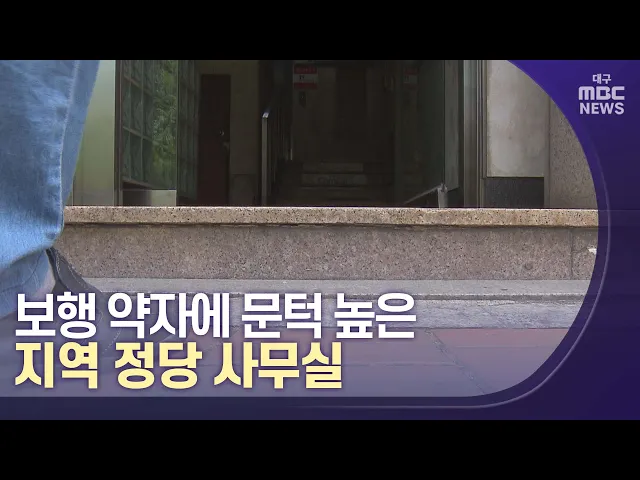 ◀앵커▶얼마 전 지방선거를 앞두고 대구에서도 대구시장 후보들이 휠체어에 앉았습니다. 장애인, 노인 등 이동 약자들의 오가는데 얼마나 힘든지 체험하는 것이었는데요.그런데, 정작 이들이 속한 정당 사무실 문턱이 높습니다.김은혜 기자입니다.◀기자▶대구 수성구에 있는 한 건물.국민의힘 대구시당과 경북도당에 가려면 ...