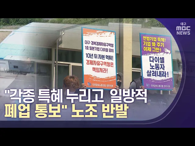 ◀앵커▶경북 영천의 한 자동차부품 제조 업체가 폐업을 통보해 노조가 반발하고 있습니다. 이 기업은 대구경북경제자유구역청의 외국인 투자 유치 1호 기업으로, 여러 혜택을 받았는데요,우리나라에서 혜택만 누리고 빠져나가는 이른바 '먹튀' 논란에 휩싸였습니다.보도에 김은혜 기자입니다. ◀기자▶경북 영천 첨단부품 소재...