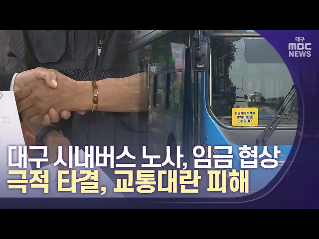 ◀앵커▶대구 시내버스 노사가 총파업을 9시간가량 앞두고 임금 협상에 전격 합의했습니다. 총파업을 예고한 시내버스 노조는 즉각 파업을 철회했습니다.이로써 대구 시내버스의 89%가 멈춰서는 버스 대란을 극적으로 피하게 됐는데요,4월 27일도 평소처럼 출근길 버스를 이용하실 수 있습니다.김은혜 기자입니다.◀기자▶총파...
